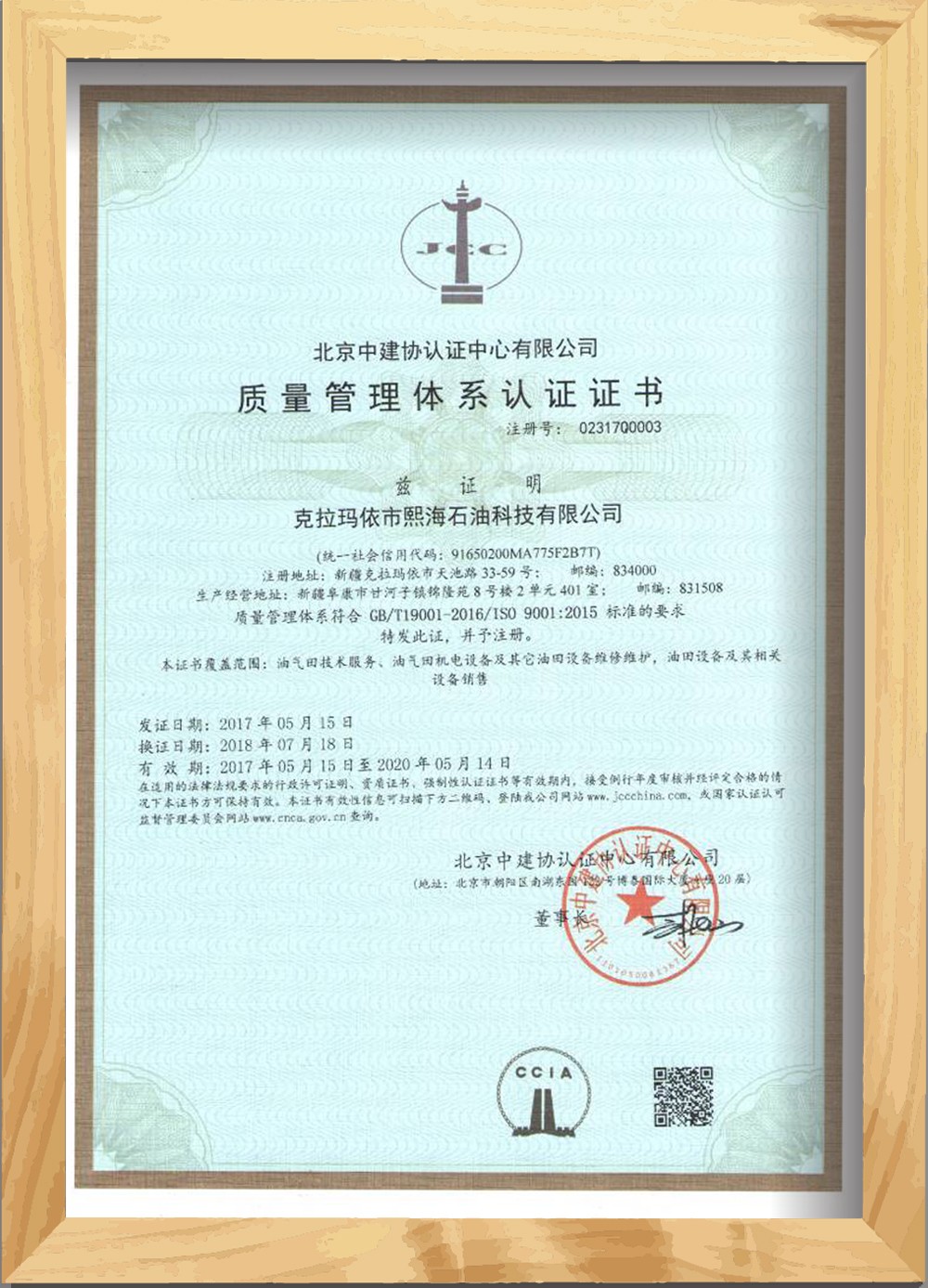 質量管理體系認證證書